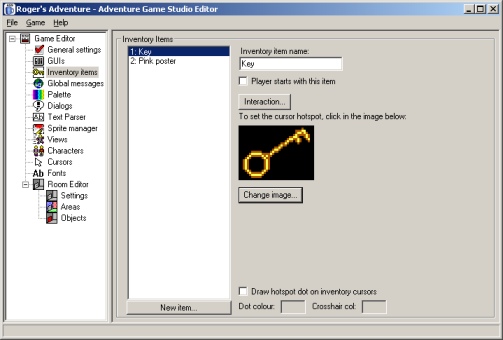 If you want the player character to start off carrying the selected item, check the "Player starts with this item" checkbox. To set what image is used, click the "Change image" button.