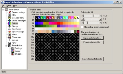 (NOTE: You should set up the palette as well as you can now, because changing it later may require you to re-import some graphics).