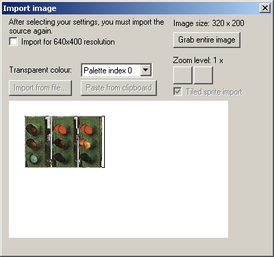 The first thing to do is to set what resolution the image is drawn for. Basically, if you are making a 640x480 game, you need to check the "Import for 640x400 resolution" box before going any further. If you are making a 320x200 game, leave it unchecked.