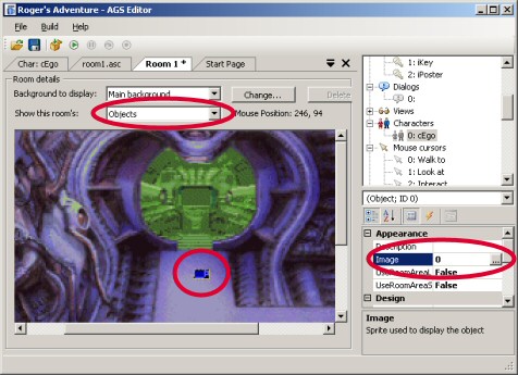 Objects are items on the screen which, unlike hotspots, can move, change and disappear. You use objects for things in the room that the player can take (since they can disappear), and for things which need to animate.