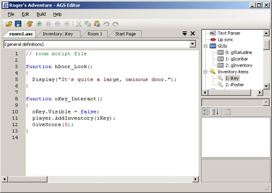 Okey, so we now have a fully-working first room. Test the game as before, and try it out. Once the player has taken the key, call up his inventory and you should see the large key picture there.