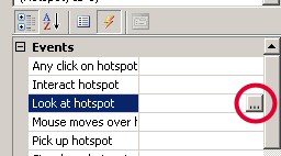 Right, let's start with something simple. When the player looks at my hotspot, I want to display a message telling them what they can see. Click on the "Look at hotspot" row, and a "..." button will appear.