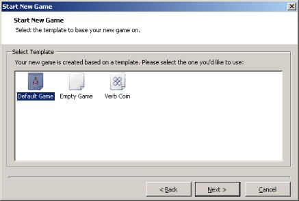 The "Default Game" template is what we'll be using, as it comes with some default graphics to get you started quickly. The "Empty Game" template is something you may want to use later on when you're familiar with AGS - it comes with no default graphics at all.